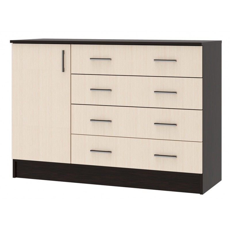 Комод СОФИЯ К1200 1Д — функциональный предмет мебели с одной дверцей, выполненный в элегантном сочетании цветов венге и дуб белфорт.